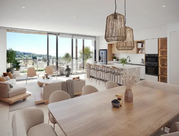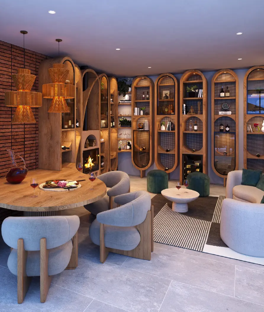 Cada espacio interior ha sido concebido como una extensión del entorno y en colaboración con Arkham y Desnivel. Tonos cálidos, texturas nobles y materiales orgánicos crean ambientes serenos, donde el diseño dialoga con la luz y la naturaleza, ofreciendo una experiencia de vida auténtica y sofisticada.